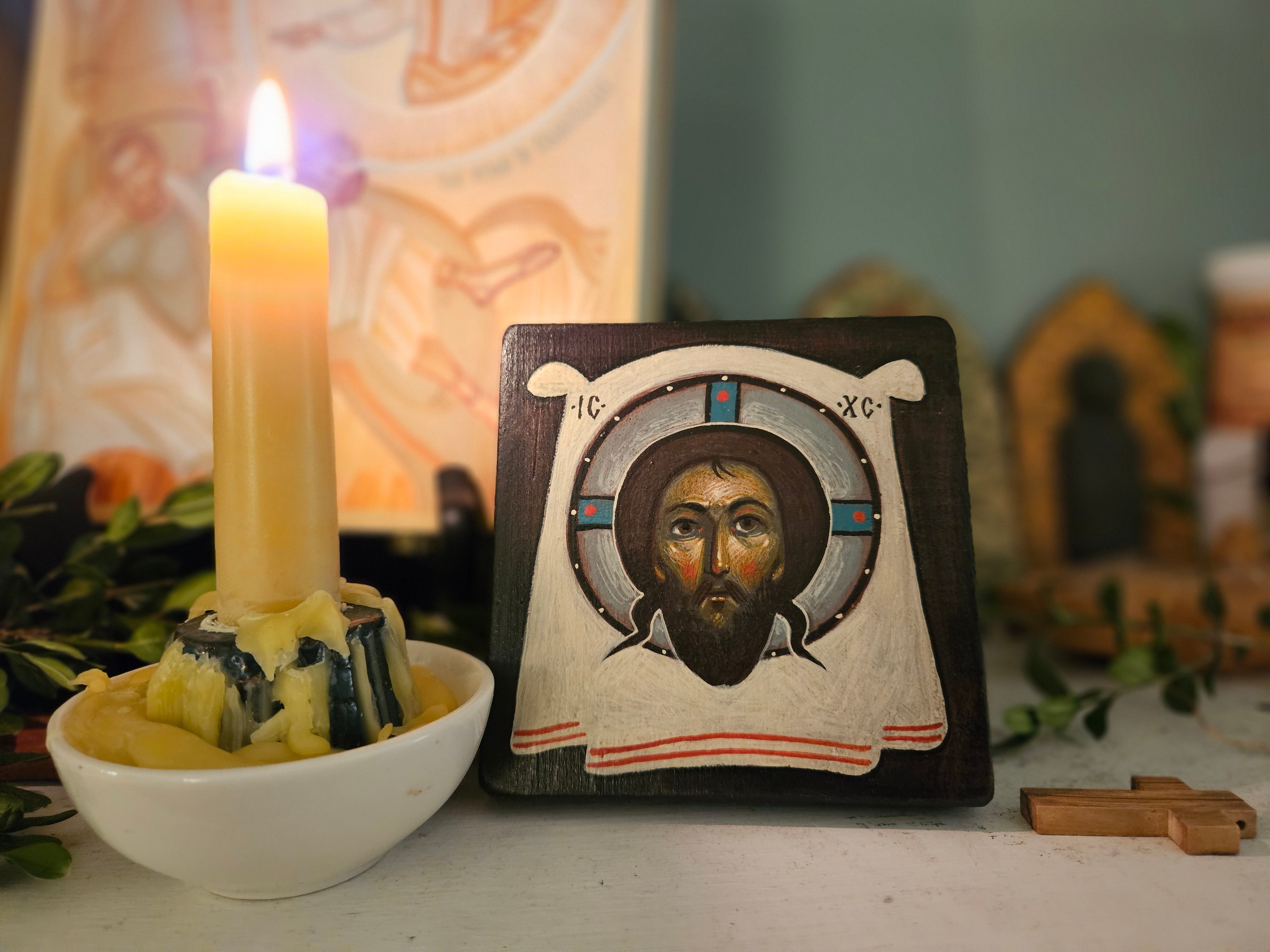 For those unfamiliar, the term “mandylion” comes from the Greek word that can mean “towel” or “handkerchief”. It’s considered the earliest icon by the Eastern and the Western Church. Those in the West probably most associate this icon with St Veronica who wipes the blood and sweat from Jesus’ face on the way to the cross. In the East, the image is usually associated with the conversion of King Abgar and the city of Edessa. This latter story is typically preferred by Orthodox Christians because it’s considered an “image not made by hands” and holds a special significance in ecclesial history and Tradition.