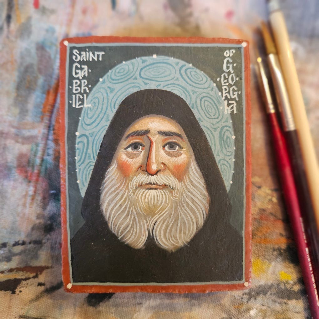 I’ve written before about St Gabriel of Georgia. One of the stories about him is that he would rescue images from magazines in which those images were mocked. He would fashion frames for them out of other discarded materials and adorn his little chapel with them. Following his example to the fullest would mean we’ve kissed our phones or computers as we’ve seen each icon cross the screen. I’m guessing you didn’t do that—neither did I—and that’s the problem.